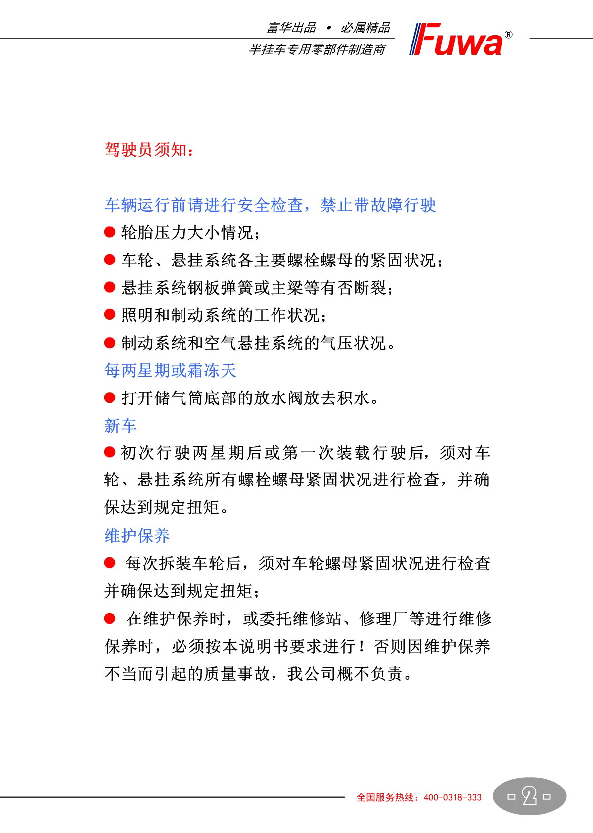 FW50免维护车轴【产品使用说明书】