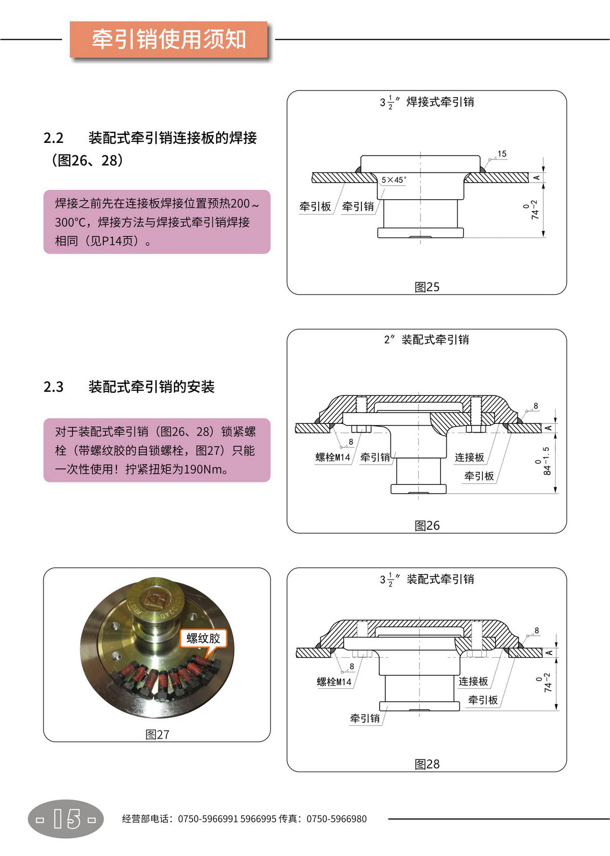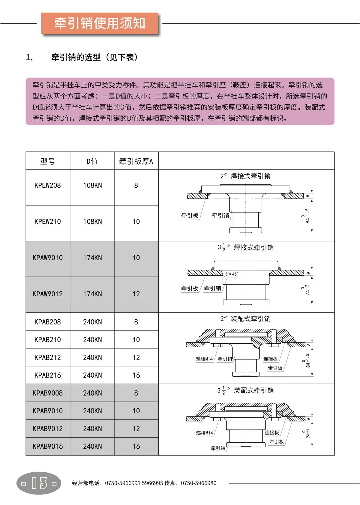 鞍座 · 牵引销【产品使用说明书】